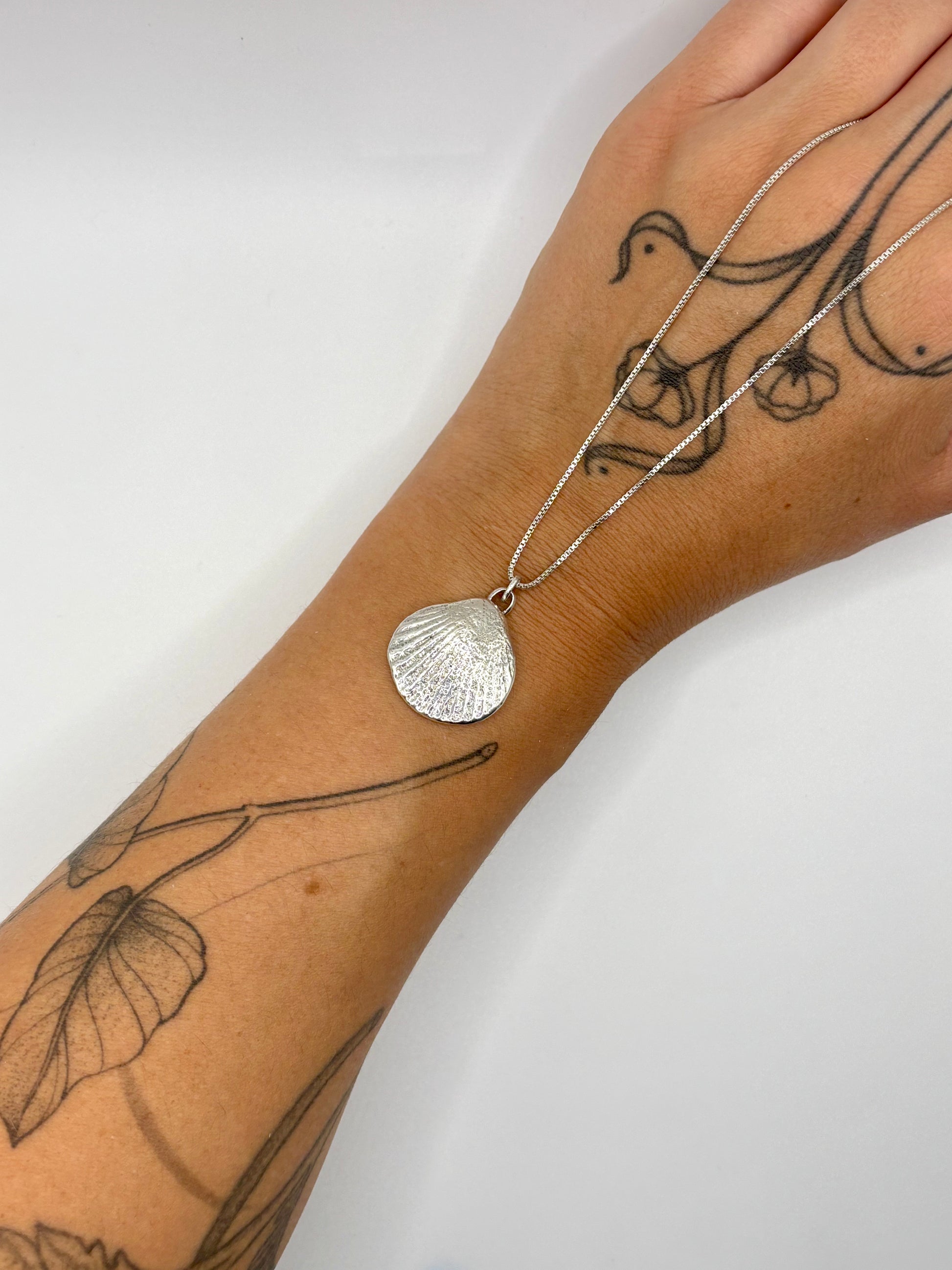 Shell pendant is approximately 1"x1" and weighs a solid 13.94g.